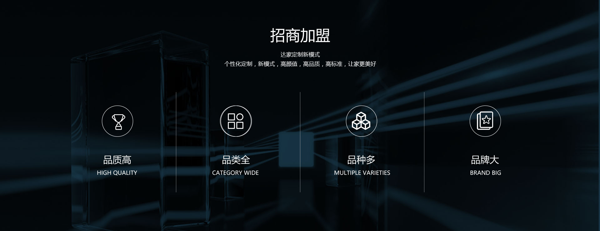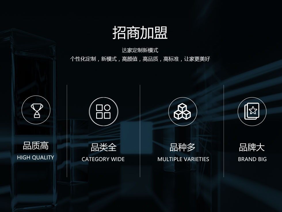 板材品质卓越花色更是丰富多样,全屋定制服务,涵盖衣柜、橱柜、书柜、电视柜等多类家具定制, 满足消费者一站式定制需求,一体化解决方案